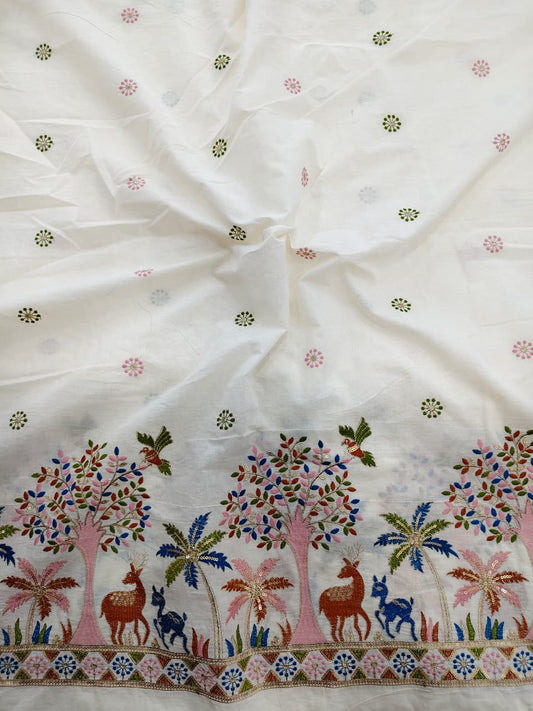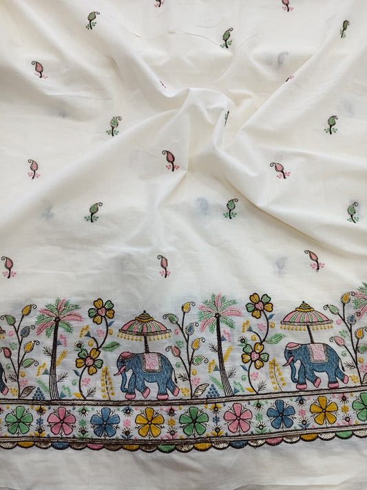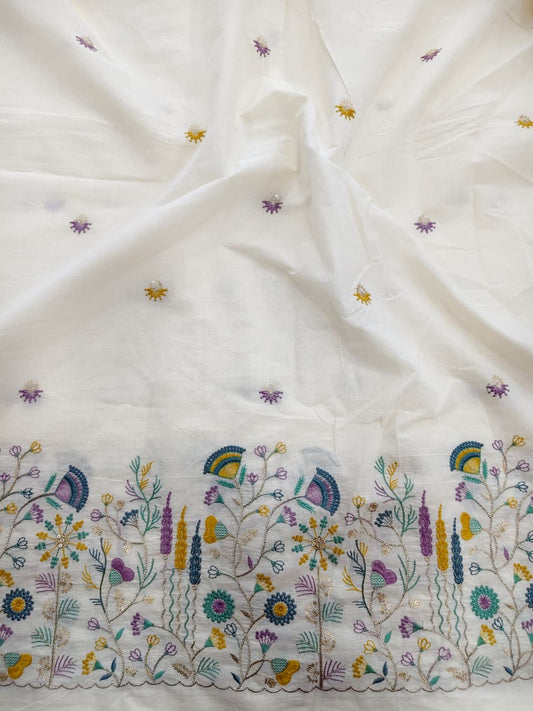 Kora cotton floral multi thread daman work